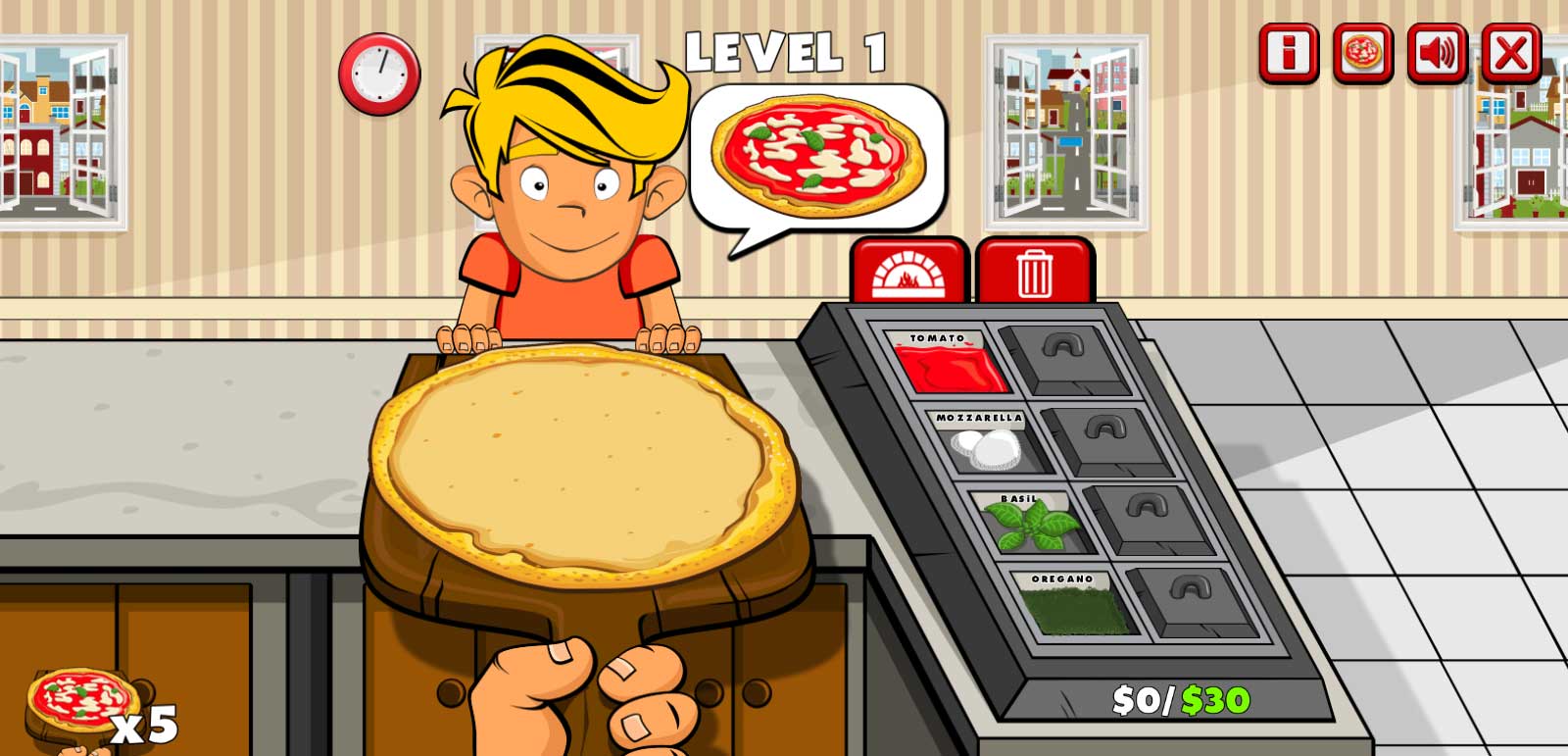 Serve these hungry customers a good meal! Prepare the pizza they want, according to recipes, and collect points! You can find the recipes on the Help section. Don't upset too many customers or you will lose the game!