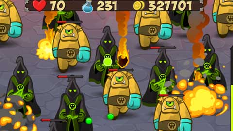 Defend your castle in a relentless battle against hordes of terrifying enemies! Along the way collect coins that allow you to buy special power ups, such as magical staffs, fireballs and poison. You’ll need to use all the magical spells in your power to help you suceed in your quest to keep the evil forces away!