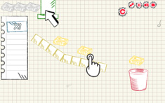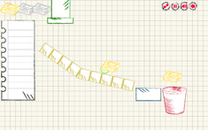 Drag and drop the objects on the notebook to make a path for the ball into the cup.